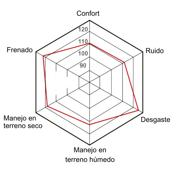 Promueva el rendimiento del agarre en terrenos húmedos y secos, mejorando el rendimiento de tracción.